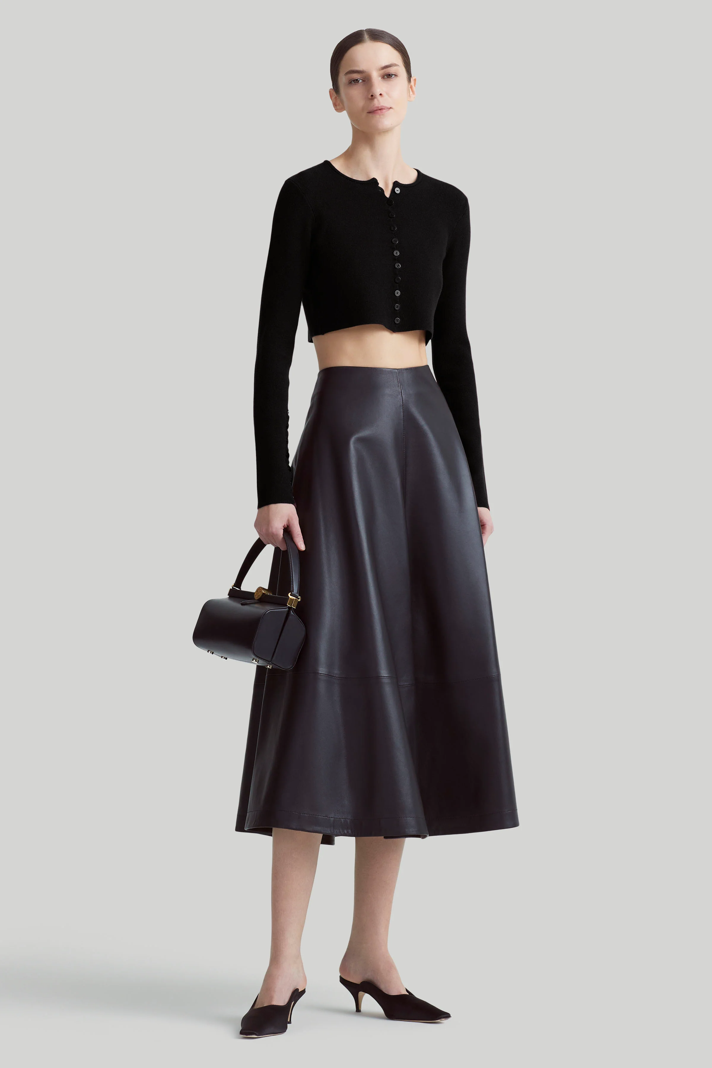The Haruni sweater has an ethereal quality. Spun from a compact knit fabric with long, flared-cuff sleeves, rows of buttons trail down the front and arms with scalloped fastenings.
