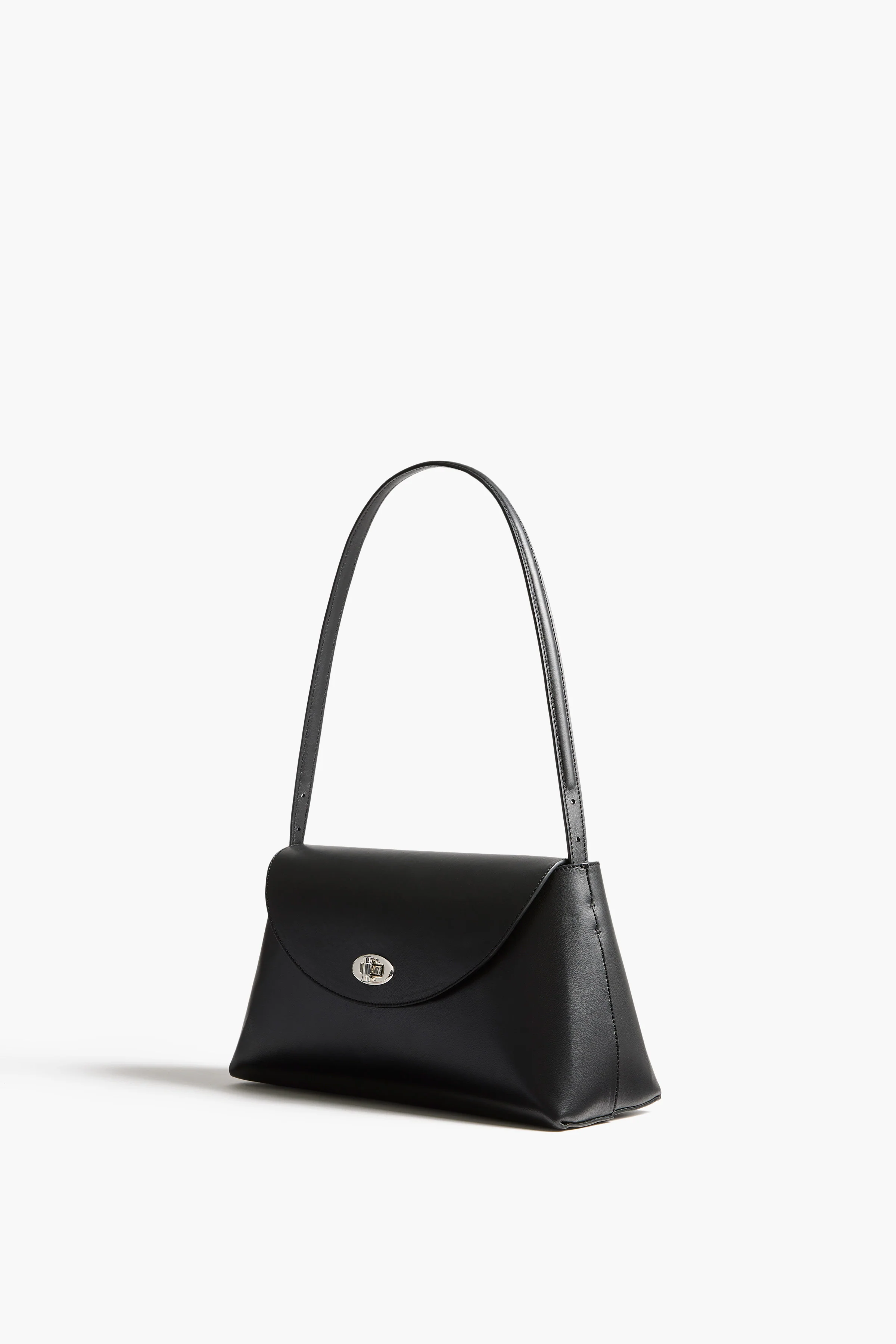 The Loquette flap bag is crafted in Spain from 100% calf leather. It has a structured shape with a curved flap and a metal turn-lock closure, finished with a slim shoulder strap.