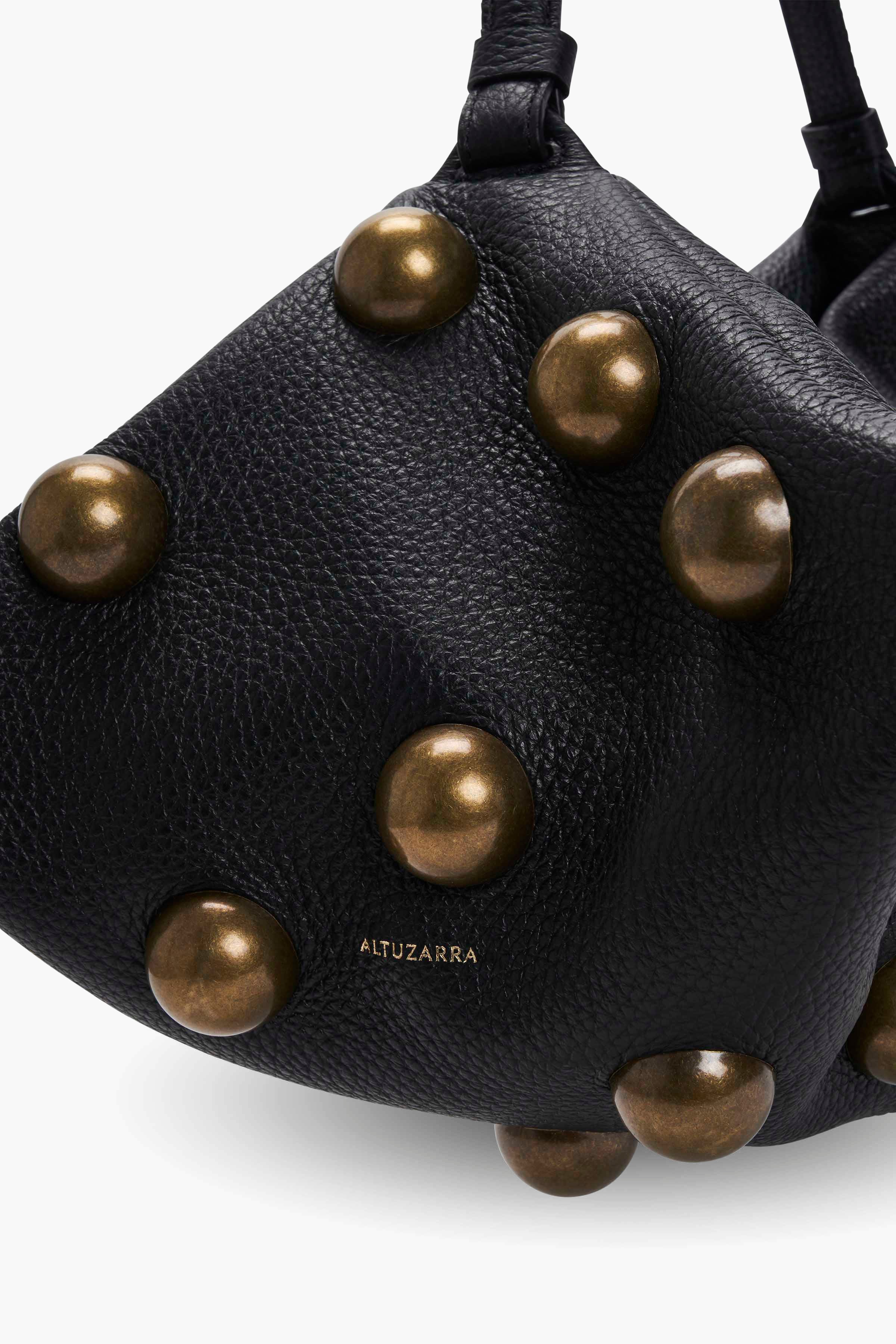 The Origami Bag is inspired by the ancient paper folding art. It's shaped in Spain from a single, rectangular piece of leather which folds down completely flat, and it's decorated with large bronzed studs.